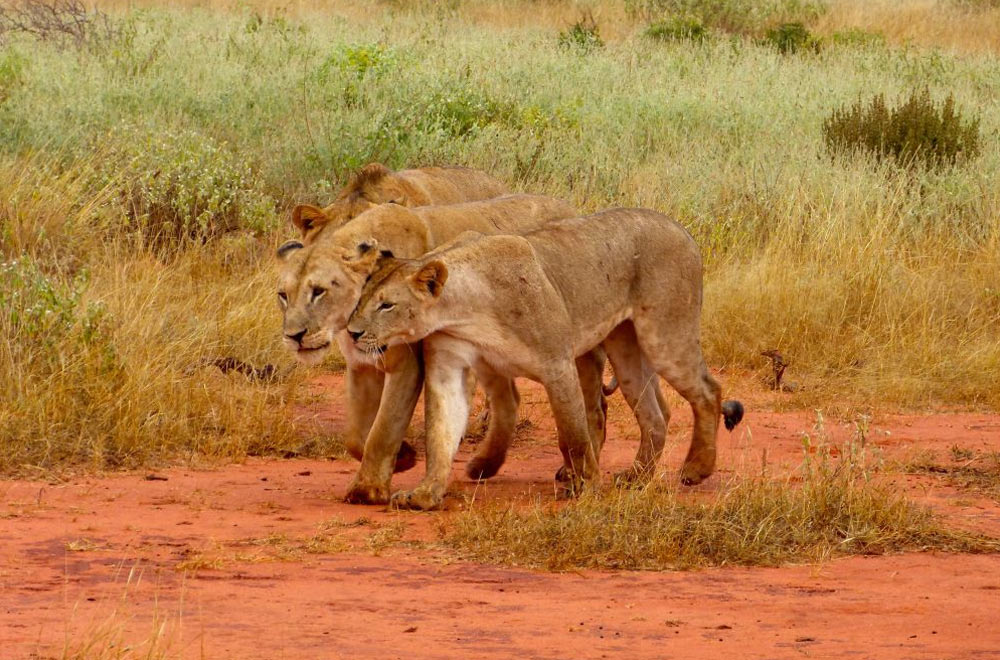 With seemingly endless stretches of grasslands and savannah, Tsavo East National Park is by far the biggest of Kenya’s parks. At more than 13,700km², Tsavo East is nine times bigger than the Maasai Mara National Reserve: indeed You are in the true wilderness of Tsavo East National Park. Most famous for its great herds of dust-red elephants rolling in the soil and gathering at watering holes, Tsavo presents encounters not easily forgotten. The park’s sparse foliage allows for easier wildlife spotting and it’s not uncommon to come upon the unique Tsavo lions whose adult males lack the familiar manes.